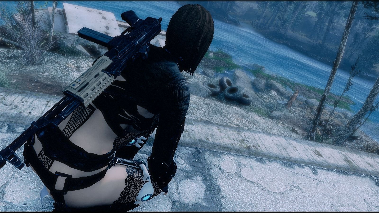 Дикие гули не ходили как зомбаки, но выглядели спокойно смотрящими на реку..
