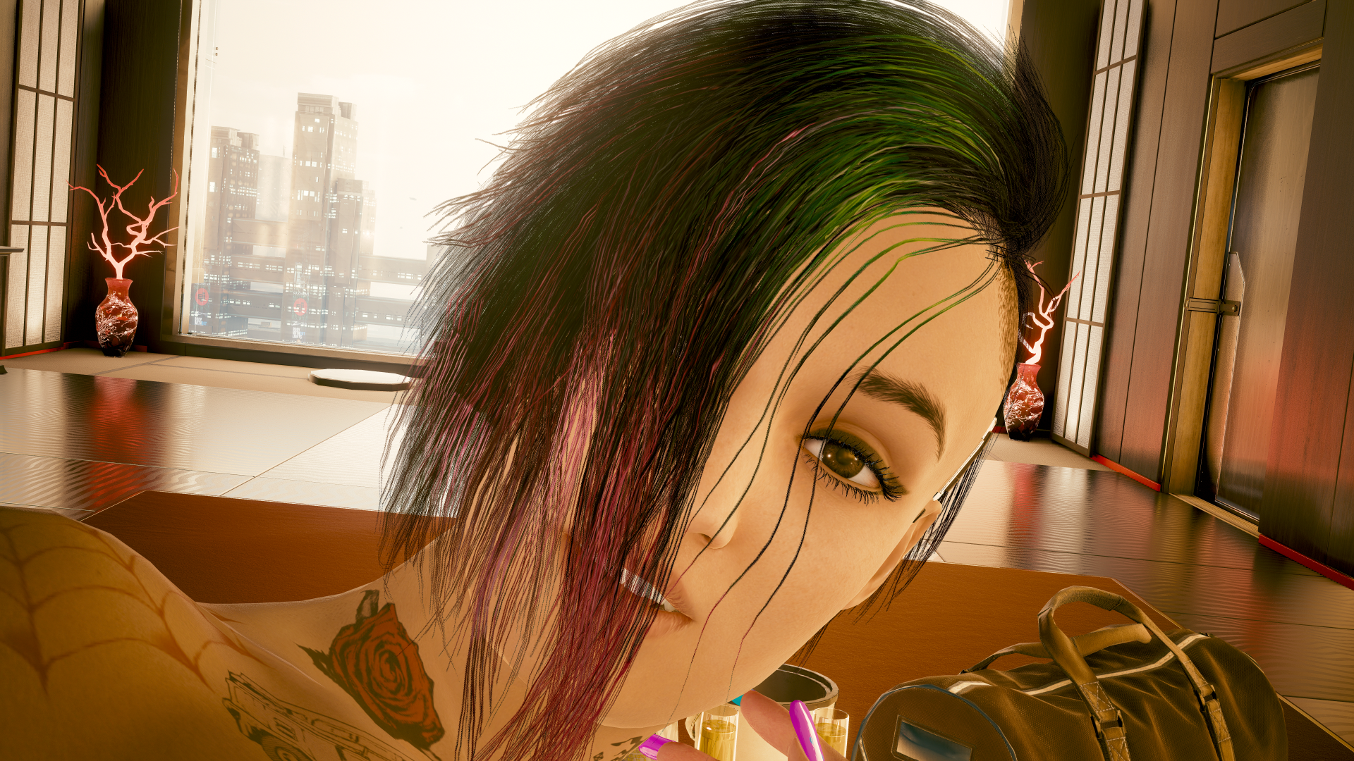 Π ΡΠ΅Π·ΠΈΠ΄Π΅Π½ΡΠΈΠΈ ΡΠ΅ΠΌΡΠΈ ΠΡΠ°ΡΠ°ΠΊΠ°. ΠΠ· ΠΌΠΎΠ΄Π° Ρ Braindance Π² Lizzie's Bar Π² ΡΠΎΠΌΠ°Π½ΡΠΈΡΠ΅ΡΠΊΠΎΠΉ ΡΡΠ΅Π½Π΅ Ρ ΠΠΆΡΠ΄ΠΈ.