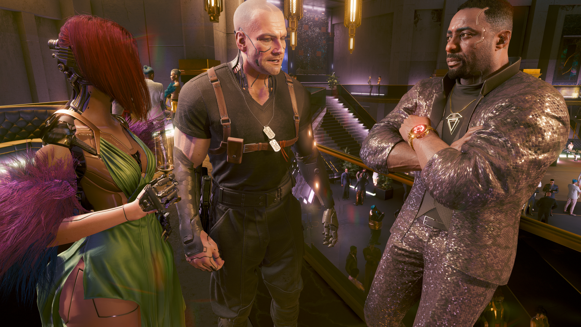 Соми знакомит Курта Хансена с Соломоном Ридом и Ви. На закрытой вечеринке в концерт-холле отеля «Чёрный сапфир» Пёсьего города.