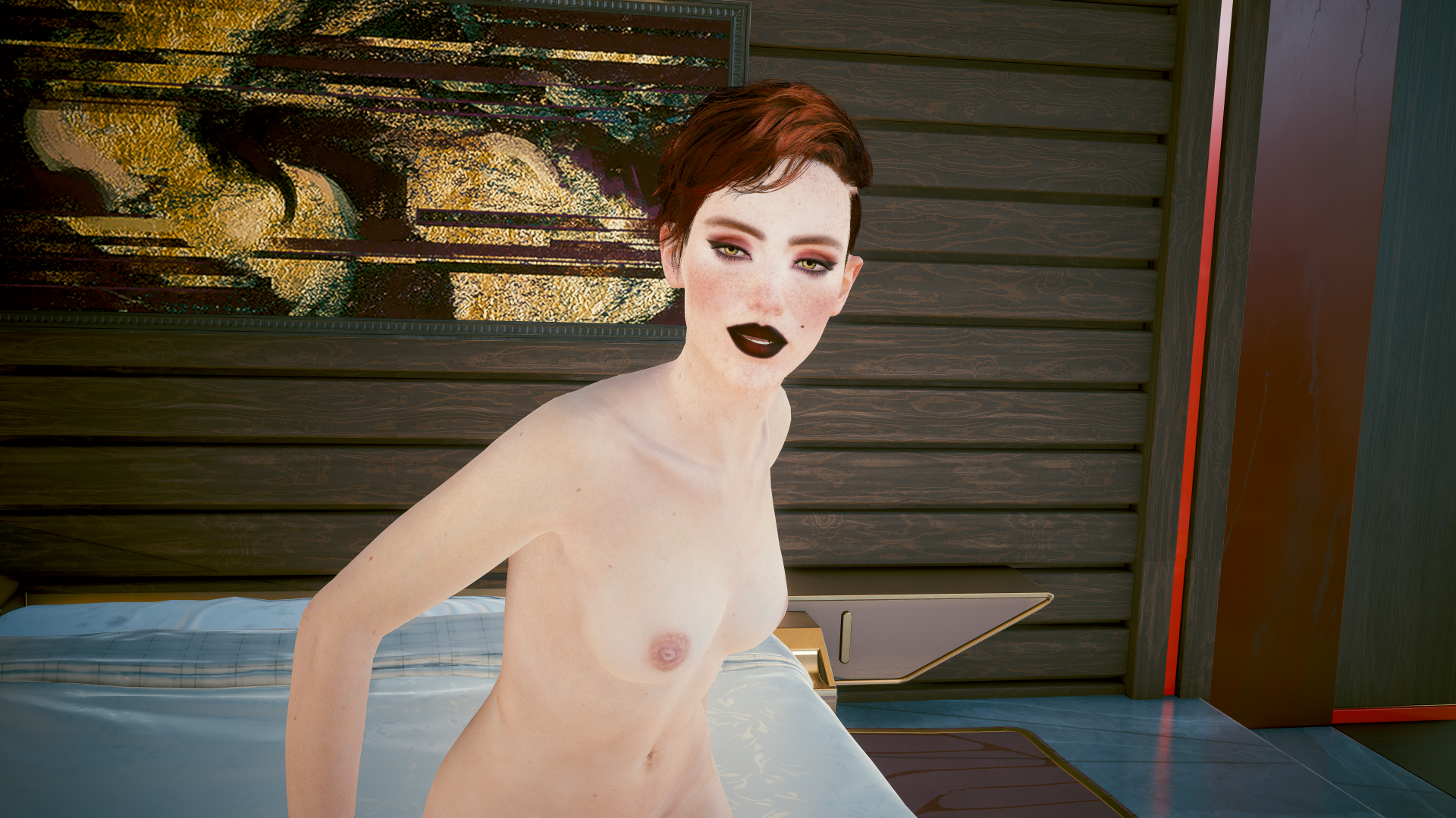 Аврора во время романтического свидания с Ви из мода "Aurore Romanced (Lady Marmalade)". В номере отеля «Тёмная материя».