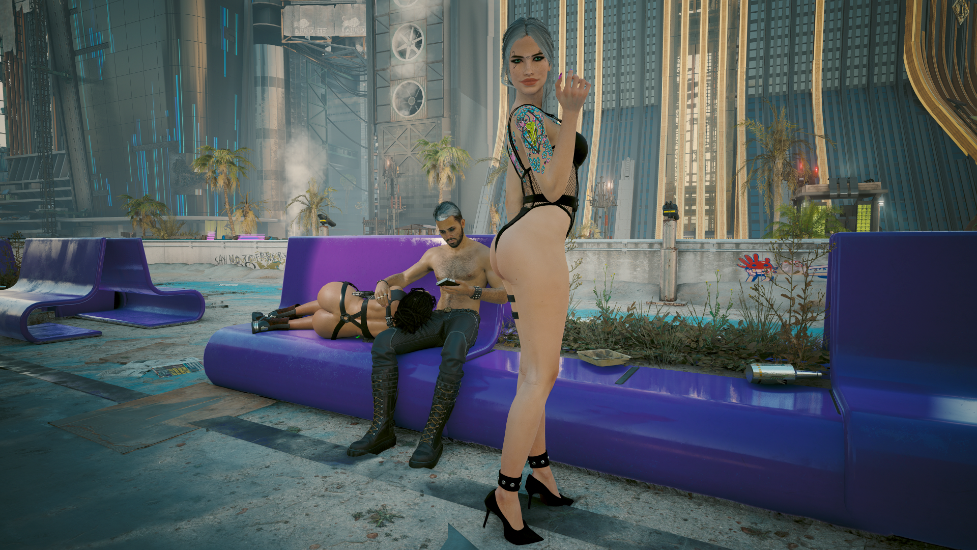 С подсветкой из тени лучом (с самой слабой слабой регулируемой яркостью) ручного фонарика Ви. На скамейке в Пёсьем городе.