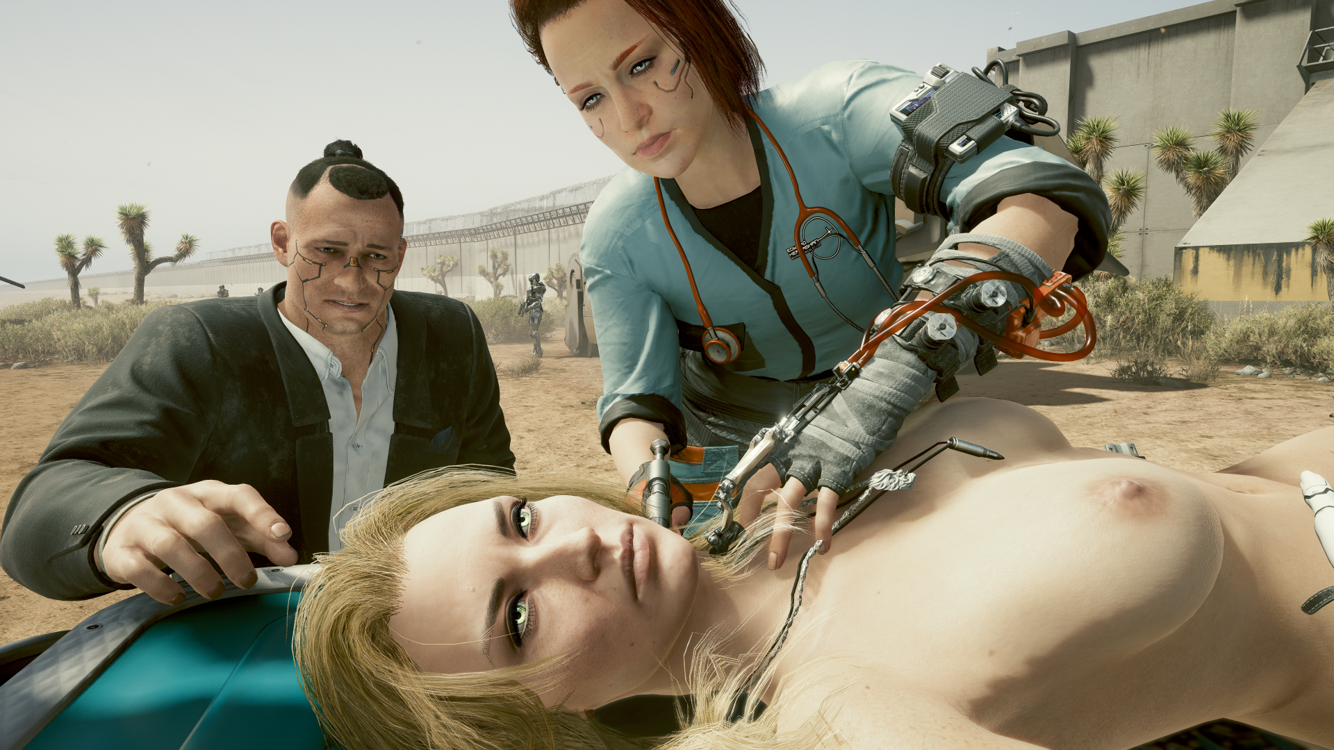 Чувиха врач(иха):-"Восстанавливаю работу сердечной мышцы". Джонни, Ви и Джеки привезли Альт для оживления, к тем врачам реаниматорам из космического агентства N.U.S.A., которым удалось оживить Джеки.