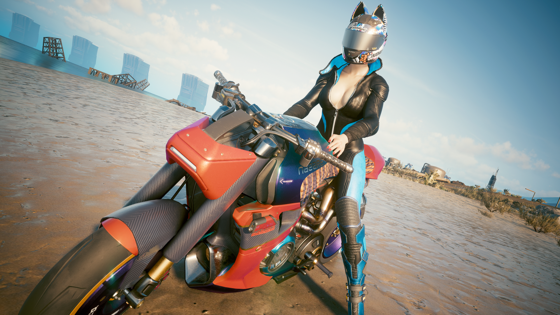 Ви в новом мото-комбинезоне и кибер-шлеме.