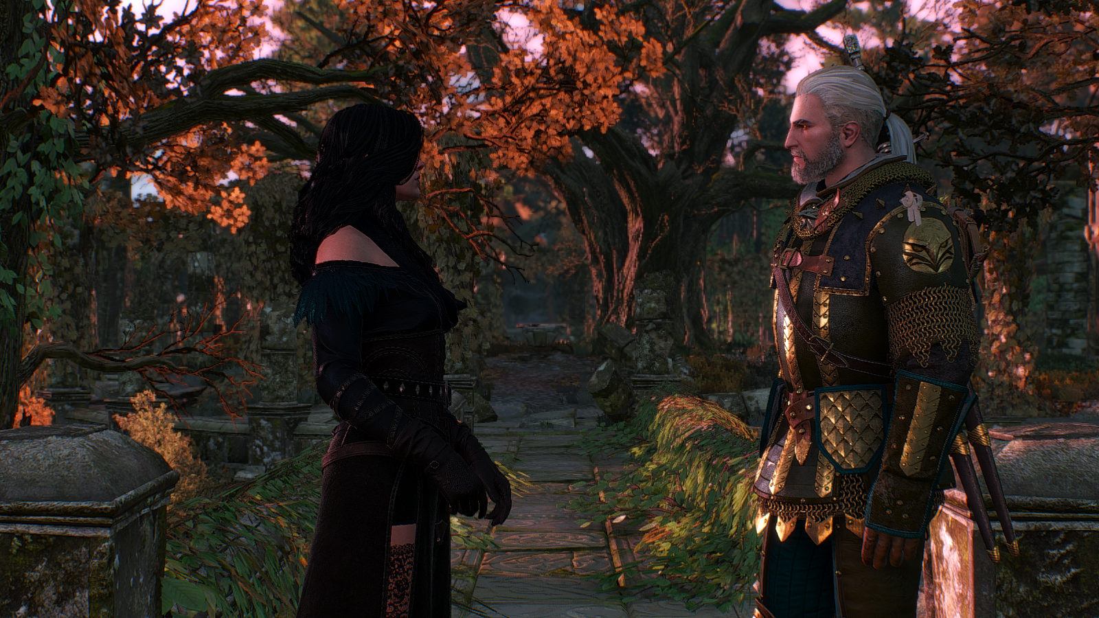 Йеннифер и Геральт в старом саду.. Ведьмак III (сборка Торна)