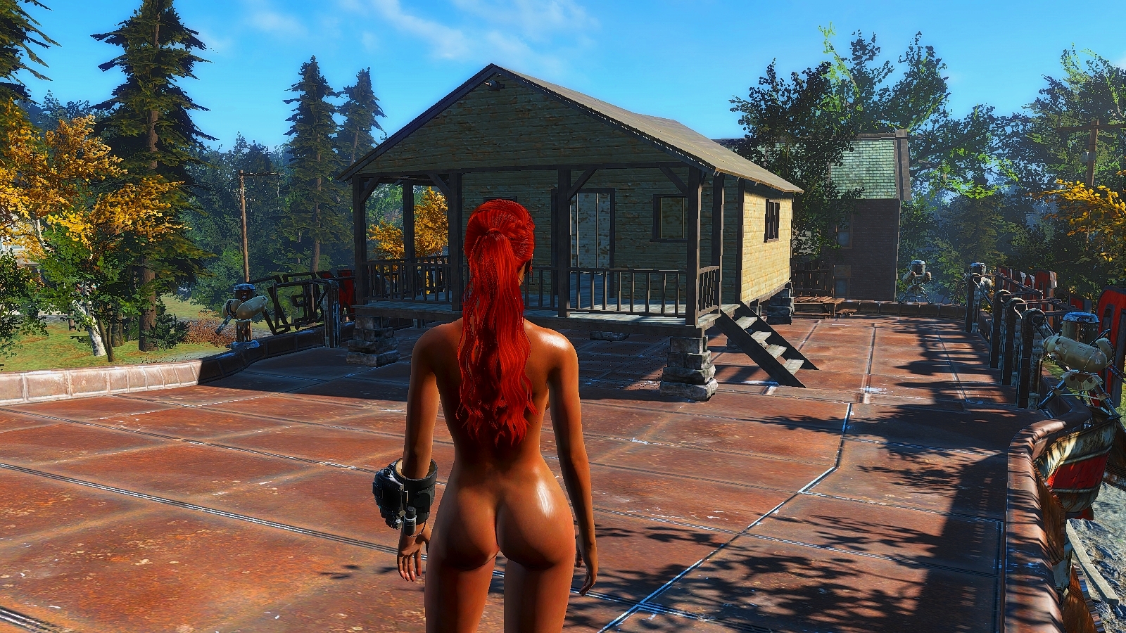 ..в мире Фаллаута -- на крыше Красной Ракеты обставленной по периметру турелями. )))