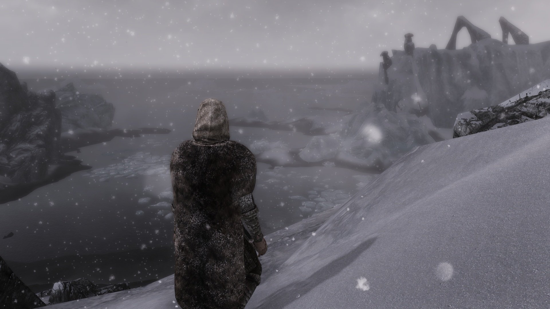 Get Snowy v.5.5 - Добавляется визуальный снежный эффект на игрока и НПС, когда идёт снег. Действует на всех живых и умерших НПС и природную живность.
