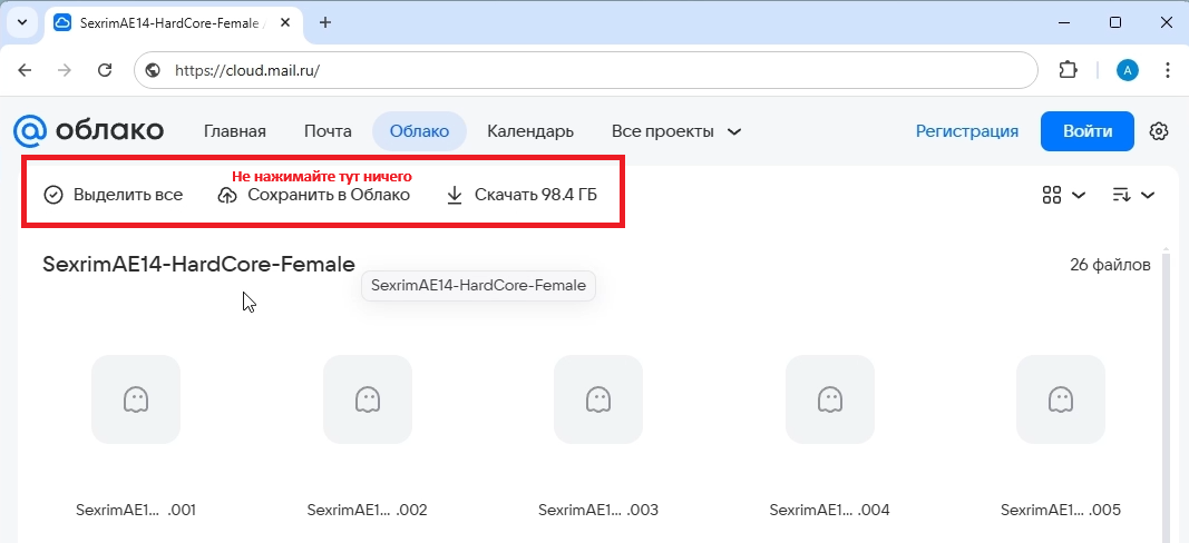 На странице скачивания mail.ru вы увидите файлы, расположенные в виде таблицы. Самое главное ни в коем случае не нажимать кнопку "Скачать..."  и другие элементы вверху над таблицей с файлами.