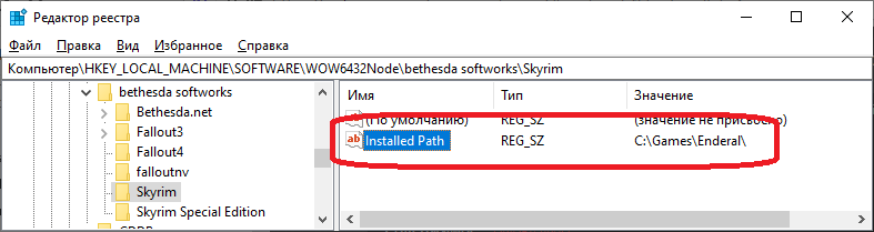 Далее в дереве каталогов слева найдите параметр \HKEY_LOCAL_MACHINE\SOFTWARE\WOW6432Node\bethesda softworks\Skyrim